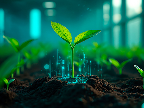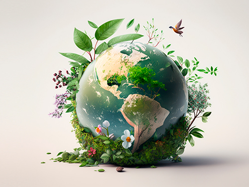 Imagem de uma planta sobre o planeta terra.